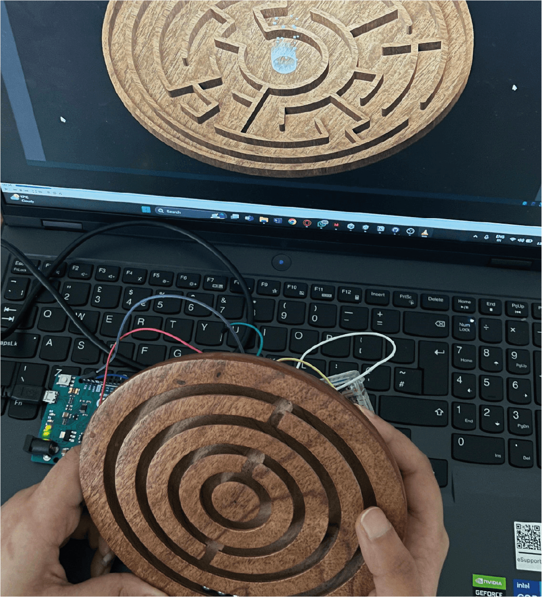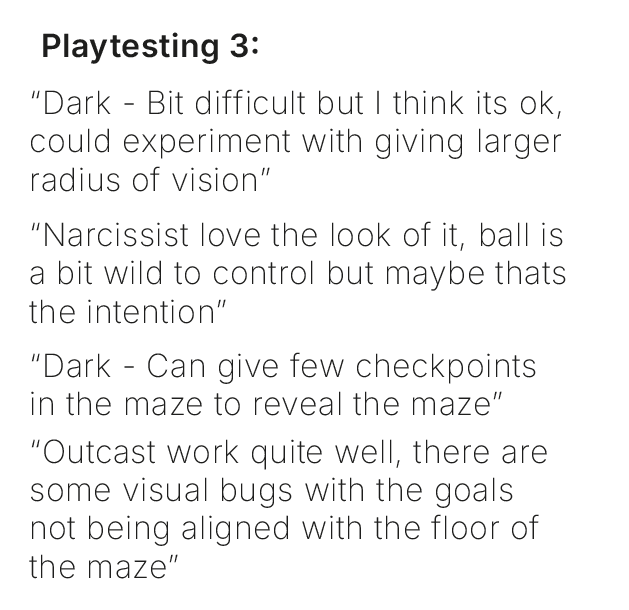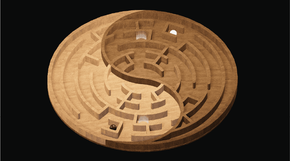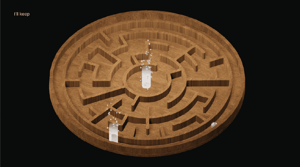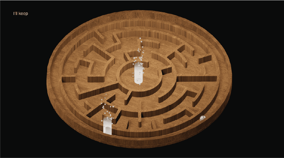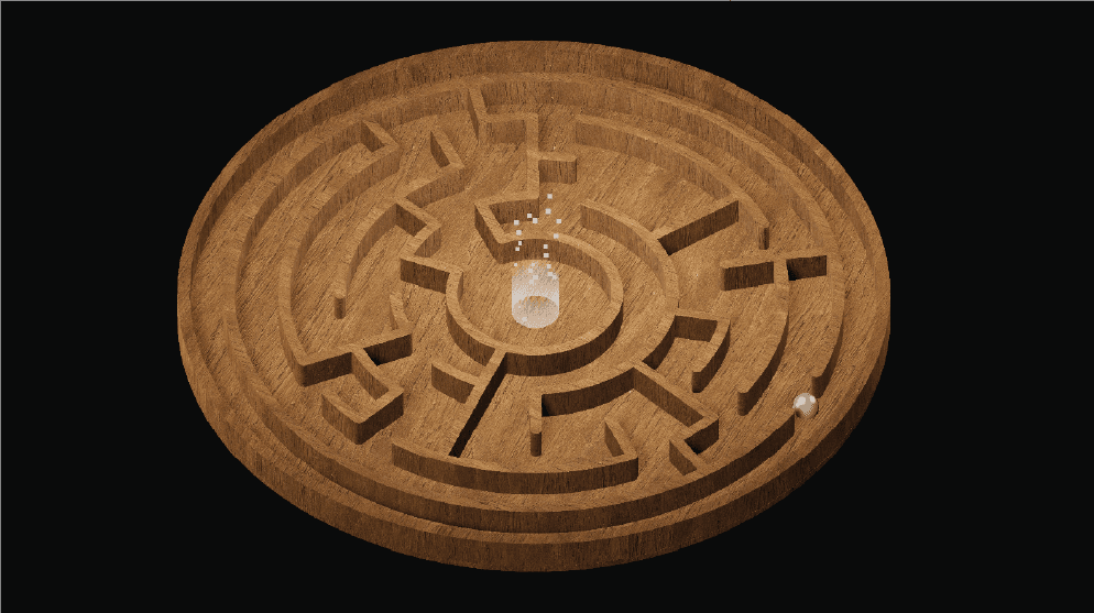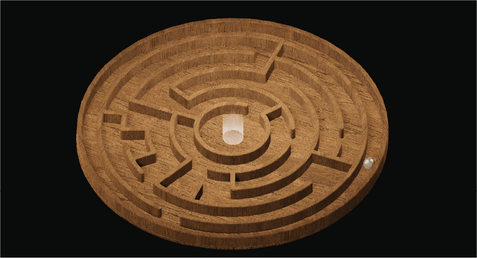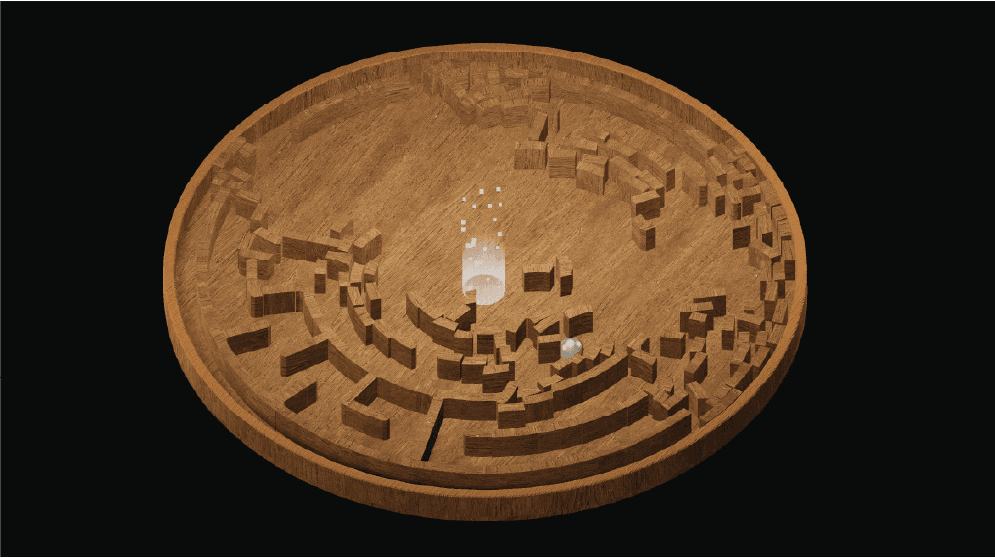 A Ball in a Maze is an immersive puzzle-narrative game based on the ball in the puzzle childrens toy that challenges the player to get the ball to the goal. The game expands on this concept by adapting it to signify social and meta commentary along with various philosophical perspectives.