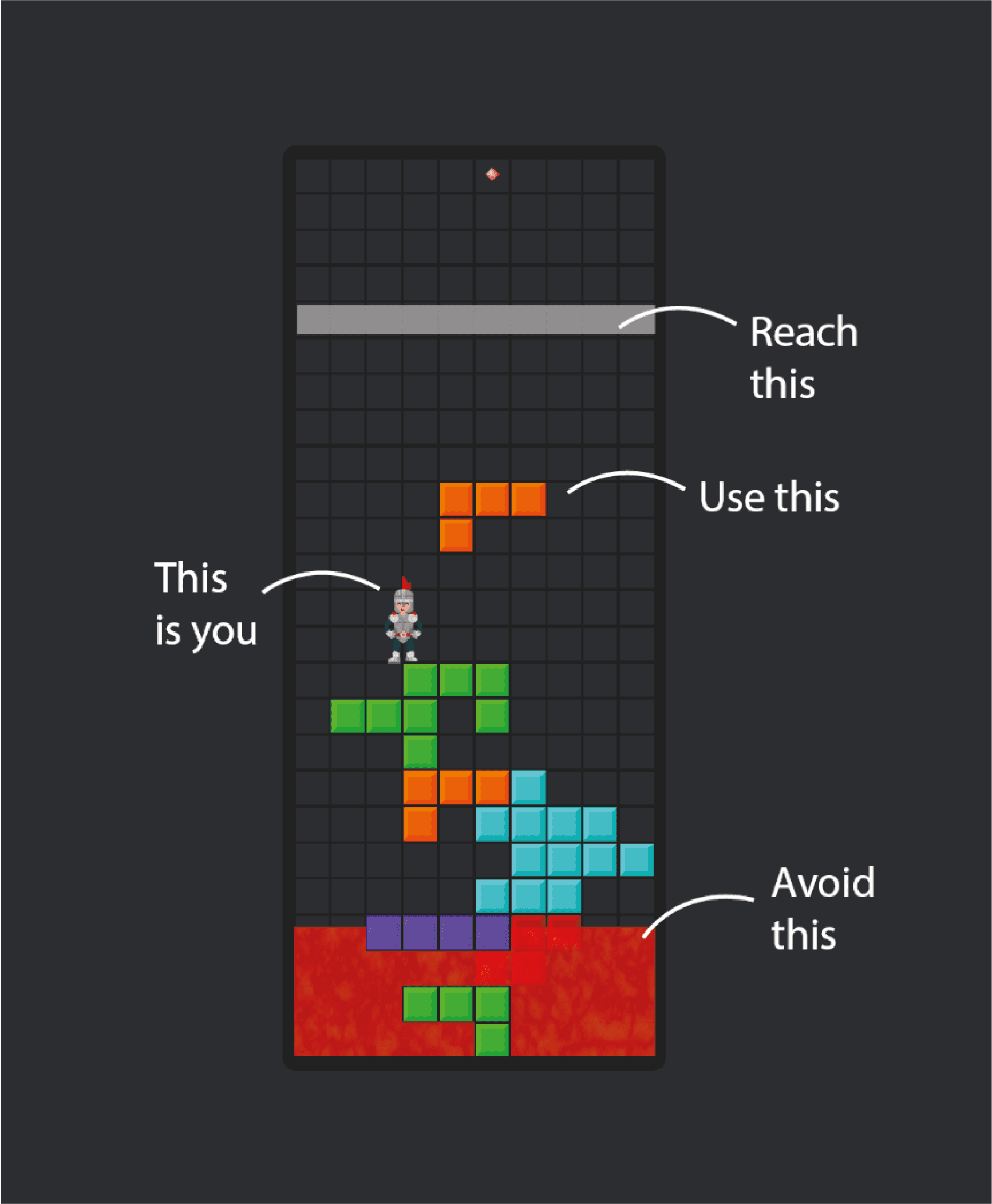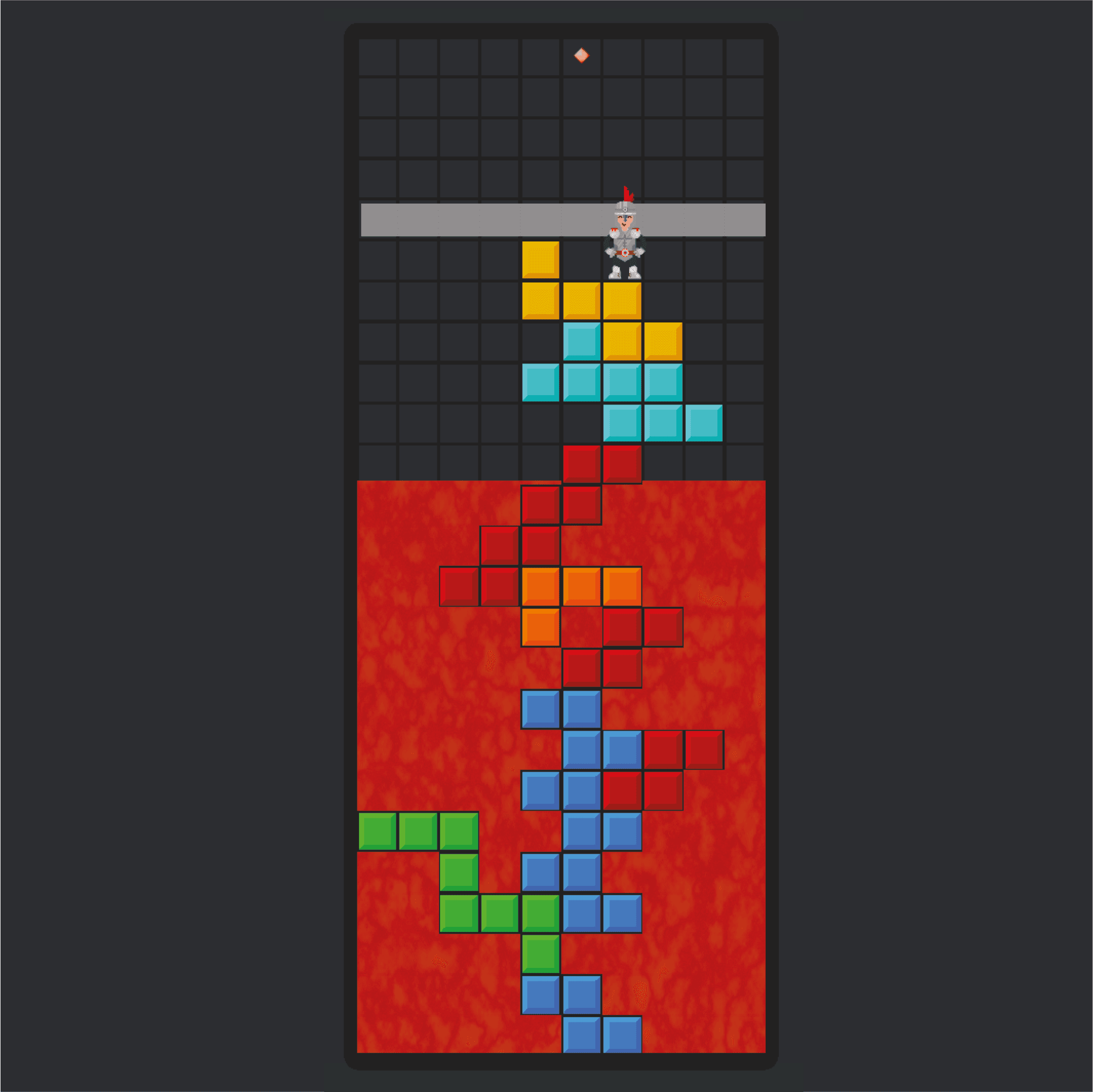 Is this Tetris is a game derived from classic Tetris and a twist of platformer. The game's objective is straightforward - move the character and reach at the top of the grid using Tetris blocks as steps to jump on. But while doing so make sure to avoid lava or game over.